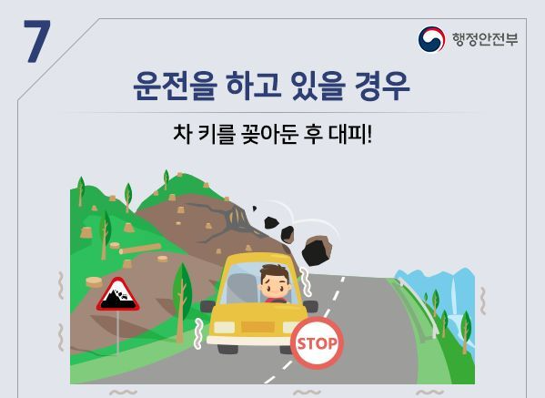 ① 산사태, 절벽 붕괴에 주의하여 안전한 곳으로 대피합니다.