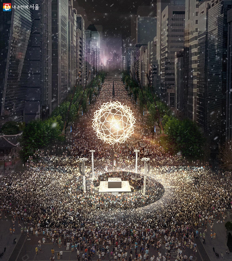 ▶ 행사위치 : 보신각~세종대로에 지름 12m 규모의 자정의 태양 떠오르는 행사