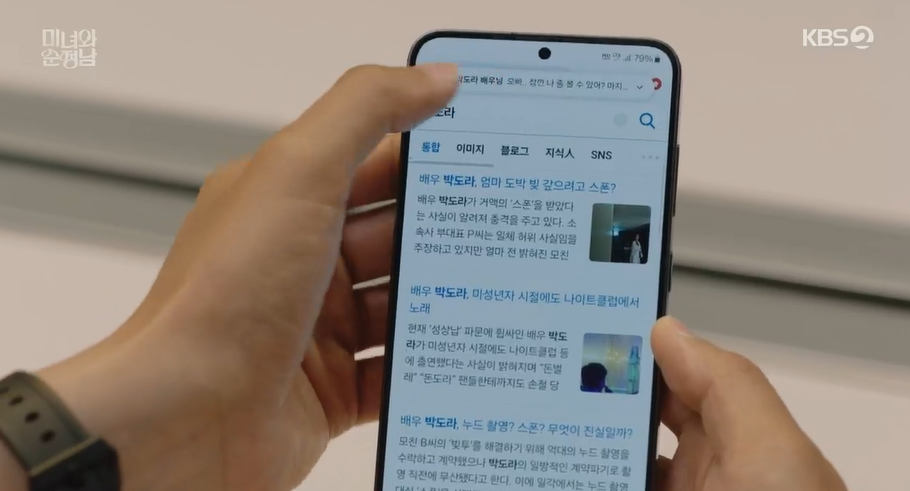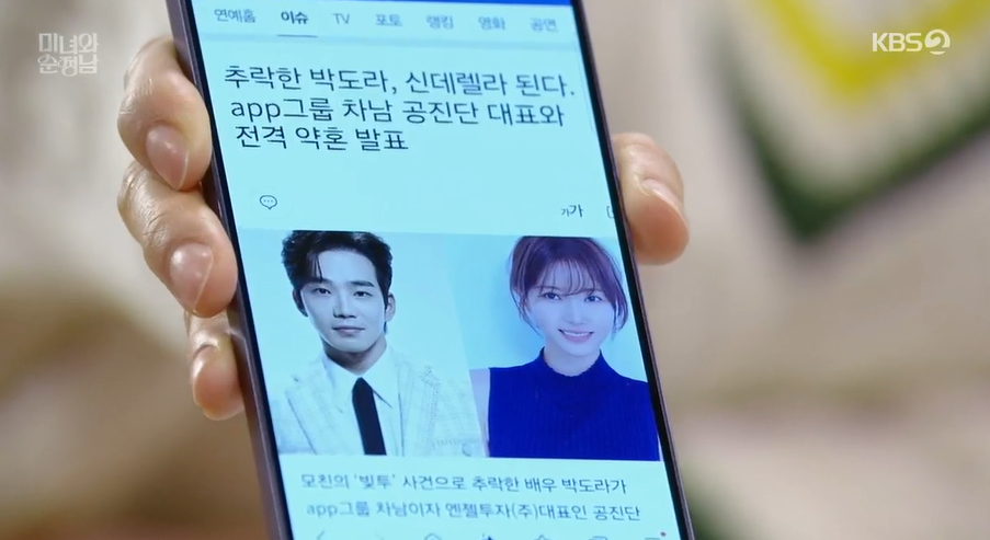 뒤늦게 도라가 호텔방에서 중년 남자와함께 있다가 찍힌 사진과 기사를 보고 필승도 오해를 하고 낙심하게 됩니다.