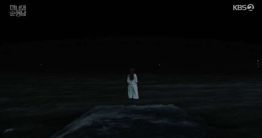 바닷가에 신발과 휴대폰등 소지품을 남겨두고 사라진 도라. 풍랑주의보때문에 수색이 중단된 상황에서 도라가 죽은것 같다는 추정 속보가 나오고 필승은 그제서야 도라가 찾았던 바닷가에 가서 도라에게 사과를 합니다.