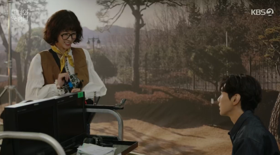필승의 전작 대본을 보다가 직진멜로를 보게된 지영은 자신도 모르게 감정이입해서 도라의 대사를 외우고 그 모습을 본 필승은 자신도 모르게 지영을 보고 도라야 하고 부릅니다.