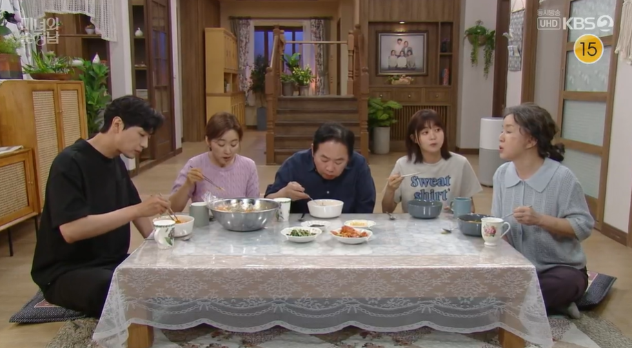 지영이 준 국수를 맛이게 먹는 식구들은 모두 맛있다며 지영을 칭찬하며 착한 세입자가 들어왔다고 좋아합니다.