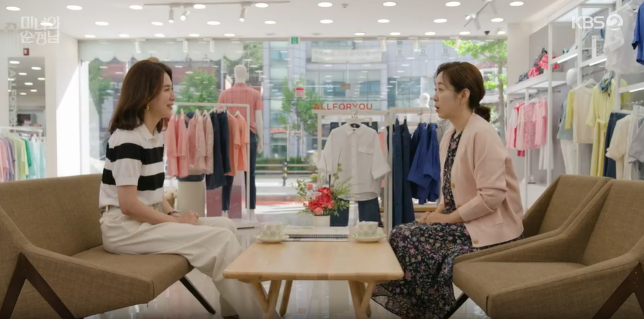 수연네 브랜드 매장에서 일을 하는 선영. 수연은 자신이 얼마 안타 차를 일부러 헐값에 선영에게 넘겨주고 필승이 그 차를 탄다는 말에 좋아합니다.