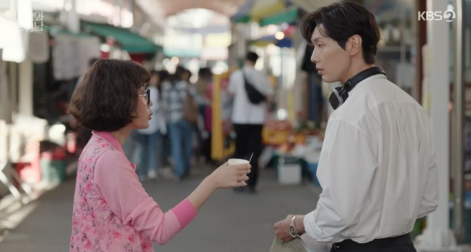 필승의 미니시리즈 촬영현장. 마침 장사하는 사람의 목소리가 잠겨 촬영 진행이 안되자 지영은 자신이 시골에서 시장 많이 다녀봐서 안다며 대역을 자처합니다.