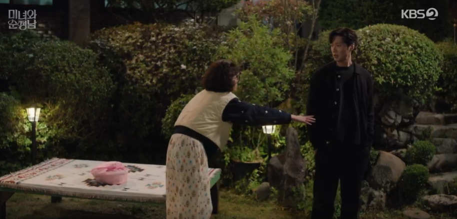 익숙하게 느껴지는 마당을 둘러보며 혼란스러워 하는 지영을 마침 필승이 보고 말을 겁니다.