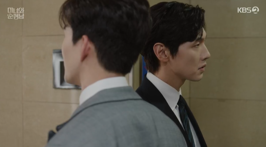 화장실에서 마주친 공진단과 필승. 공진단은 자신이 먼저 지영에게 관심이 있었다고 이야기 하고, 필승은 결혼할 사람도 있는 사람이 그러는 거 쓰레기 같은 짓이라며 공진단에게 맞받아 칩니다.
