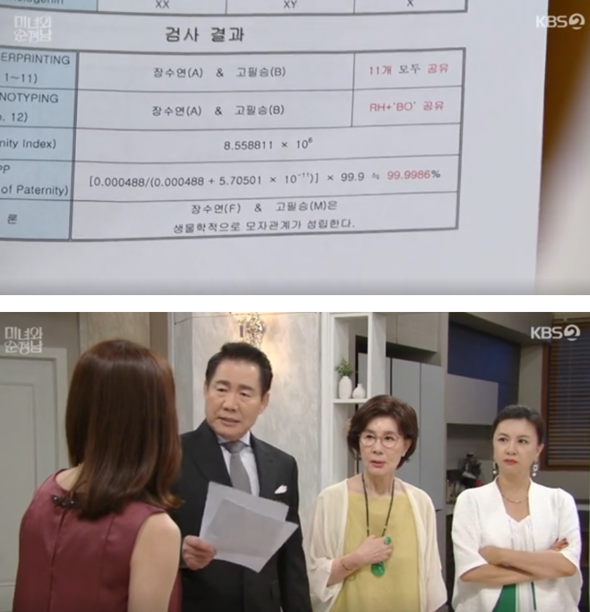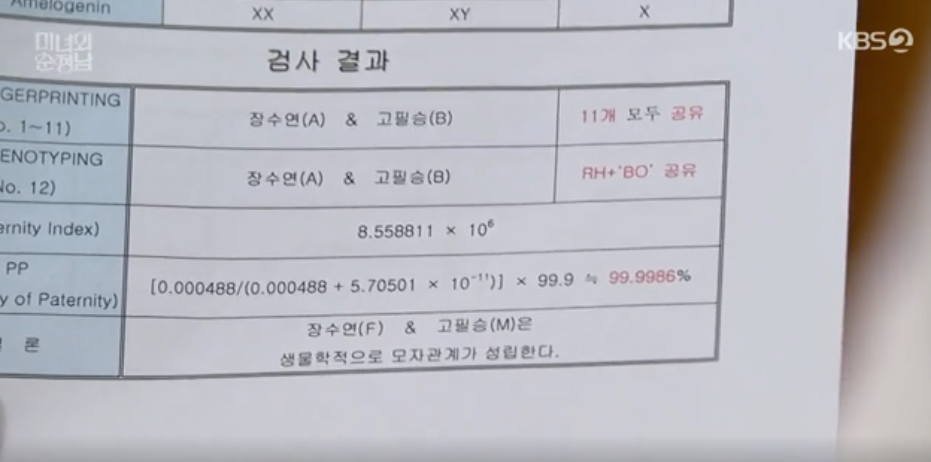 애교는 장수연과 고필승이 모자관계가 성립한다는 유전자 검사 결과를 고모님에게 보여줍니다.