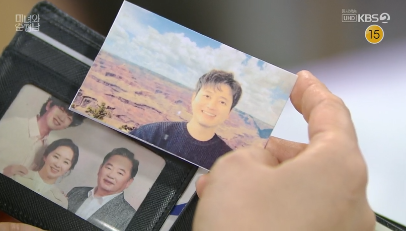 선영은 빨래한 옷을 갖다놓다가 필승의 지갑에서 낯선 남자의 사진을 발견하고 필승과 닮은 모습에 생부임을 짐작하고는 놀라서 방으로 돌아갑니다.