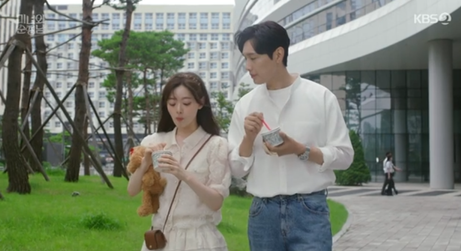 다음날 회사근처에서 마리와 필승이 아이스크림을 함께 먹으며 친한 모습을 우연히 본 공진택은 이상하게 생각하며 마리를 따로 부릅니다.