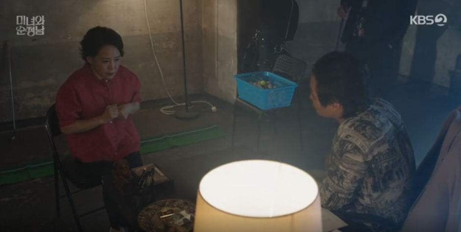 빚쟁이 한테 협박을 받은 미자는 도식에게 사실대로이야기는 못하고 혹시 모르니 몸조심하라며 신신당부를 합니다.