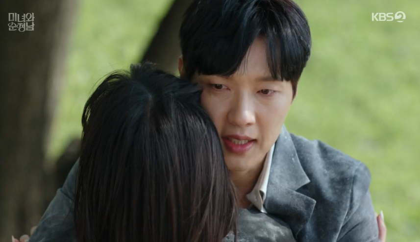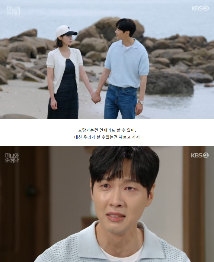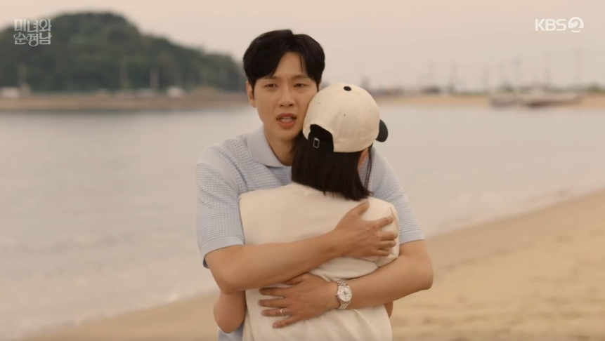 바닷가에서 도라를 발견한 필승은 단숨에 달려가, 자신을 모른척 하며 도망가려는 도라를 꼭 안아주면서 함께 이겨내자고 도라를 다독여 줍니다.