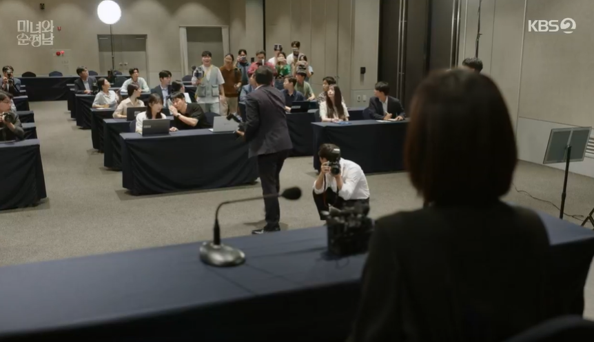 사과를 하고 진실을 밝히려던 기자회견이였지만, 기자들은 오히려 고필승 감독도 모든것을 알고 도라와 한편으로 신분세탁을 위한 위장결혼을 하고 편파적인 캐스팅을 한것처럼 몰아가자 도라는 필승은 잘못이 없다겨 감싸주려고 합니다.