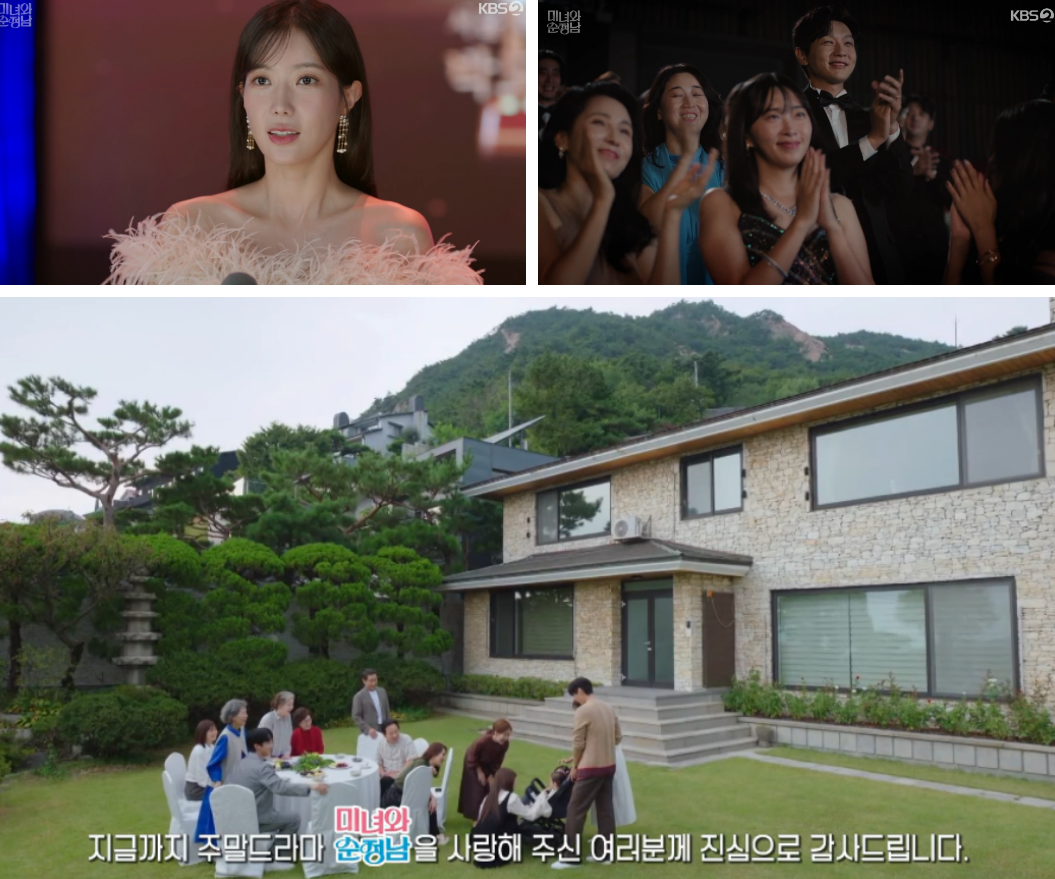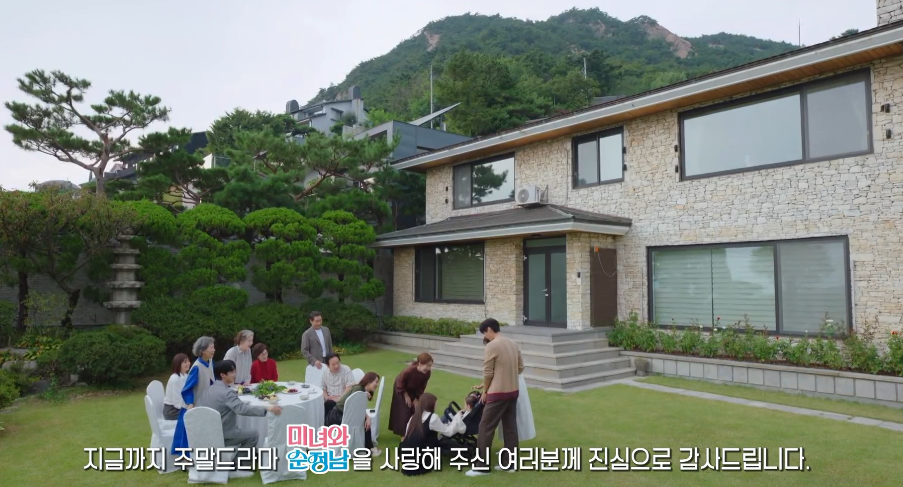 공진택이 필승네 가족화 함께 살기위해 지은 집. 필승과 도라가 예쁜 두 딸 쌍둥이를 데리고 와서 인사를 하면서 미녀와 순정남 최종회는 정말로 막을 내렸습니다.