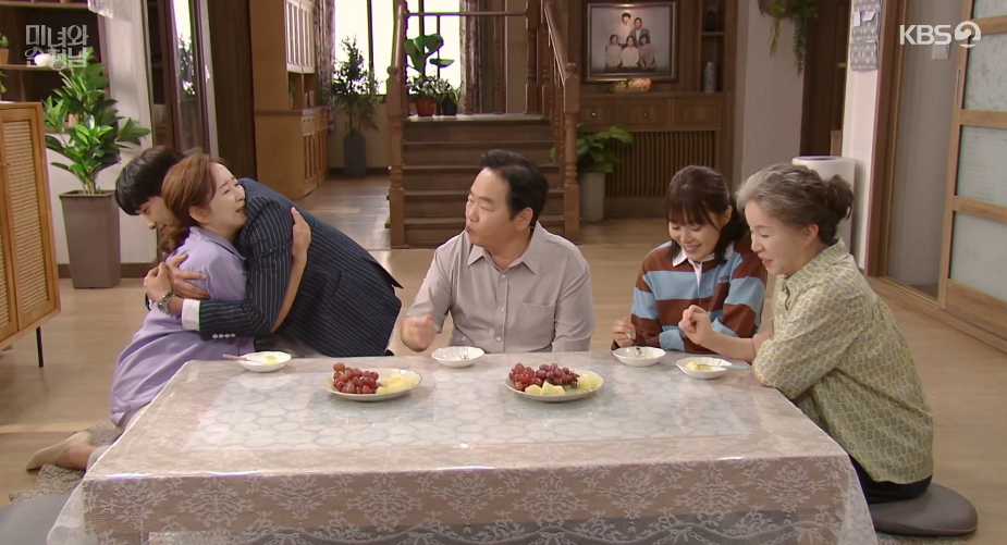 드디어 부모님의 축복어린 허락하에 마음을 터놓고 진심어린 사과와 사랑을 고백하는 도라에게 필승도 감동하여 도라를 꼭 안아줍니다.