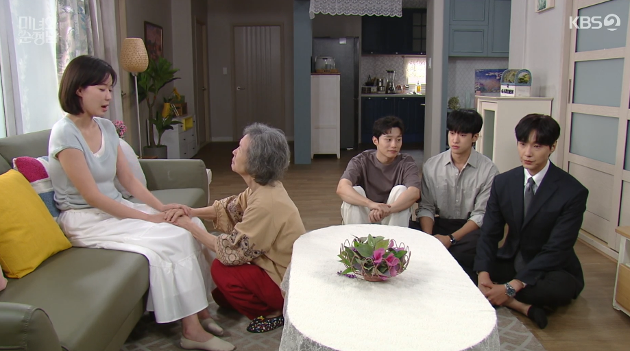 자식들한테 외면받고 돈도 떨어진 미자는 믿을 곳은 자신을 딸로 착각하는 치매걸린 할머니 뿐이라며 할머니를 찾아왔다가 도준이 약혼 소식을 듣게 됩니다.