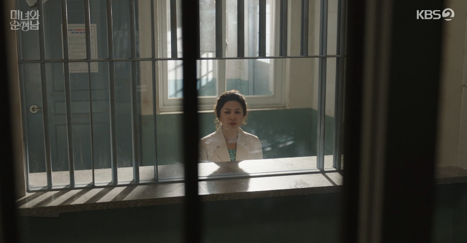 진상구 면회를 마친 홍애교는 공진단 면회를 하면서 진상구 이야기를 꺼내는데, 공진단은 버럭 화를 내면서 진상구를 아버지로 인정하지 않습니다. 되려 박도라가 걷는지, 필승과 잘 지내는지를 묻자 홍애교는 아직도 박도라에 대한미련을 못버렸냐고 묻고, 공진단은 이럴거면 면회도 오지 말라며 화를 내고 가버립니다.